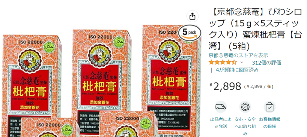 え?枇杷膏って、私が知っている台湾のテレビで良く見かけるCMの「京都念慈菴川貝枇杷膏」のことでしょうかと思っていたら、本当です!!!まさか日本でネットでも買えます。