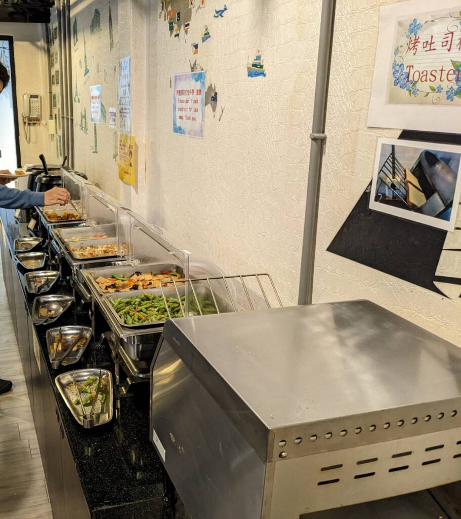 パン、ご飯、野菜、揚げ物など、品数が多くないですが、十分良いと思います。