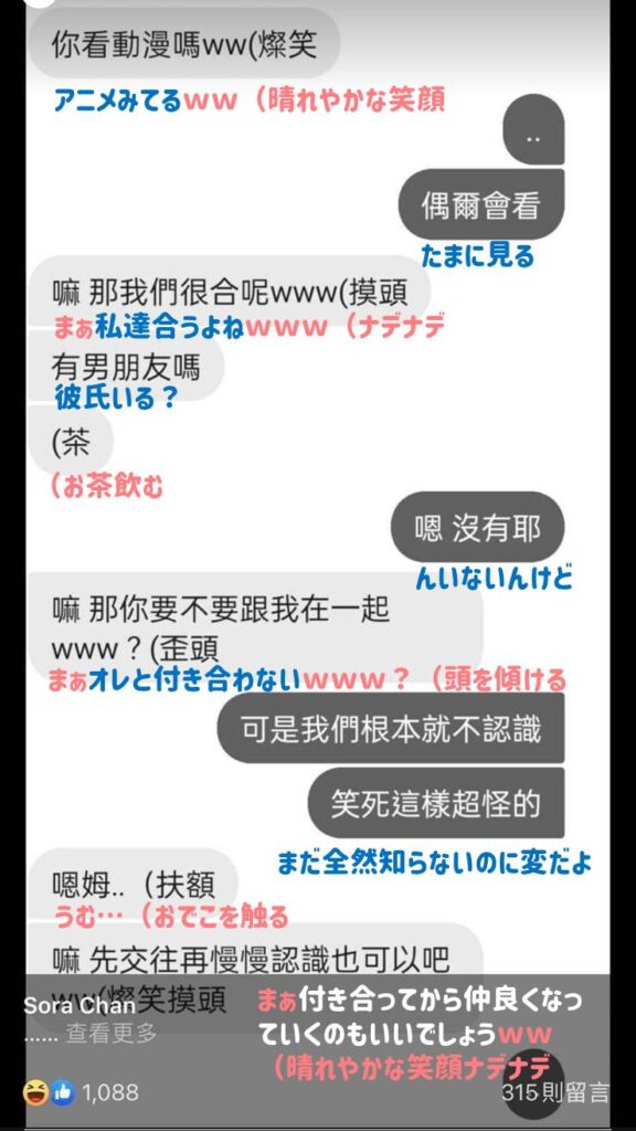 日本文化(特にアニメ)が好きな台湾人は偶に日本語の漢字をそのまま中国語として使う事があります。