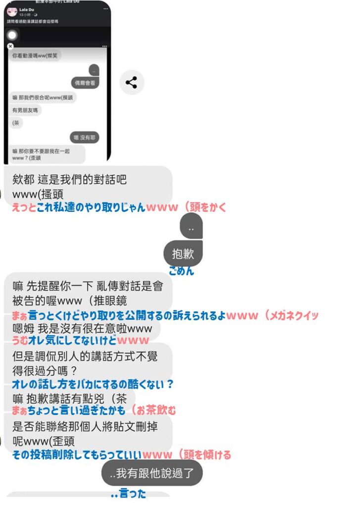 一ヶ月前頃台湾のSNSで起きた事件です。